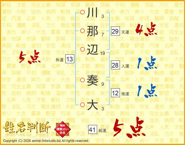 川那辺奏大さんの総運は41画の5点!