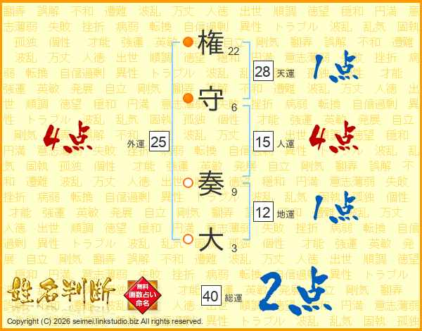権守奏大さんの総運は40画の2点!