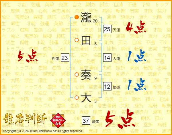瀧田奏大さんの総運は37画の5点!