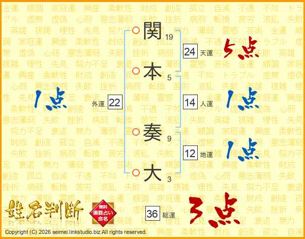 関本奏大さんの天運は24画の5点!
