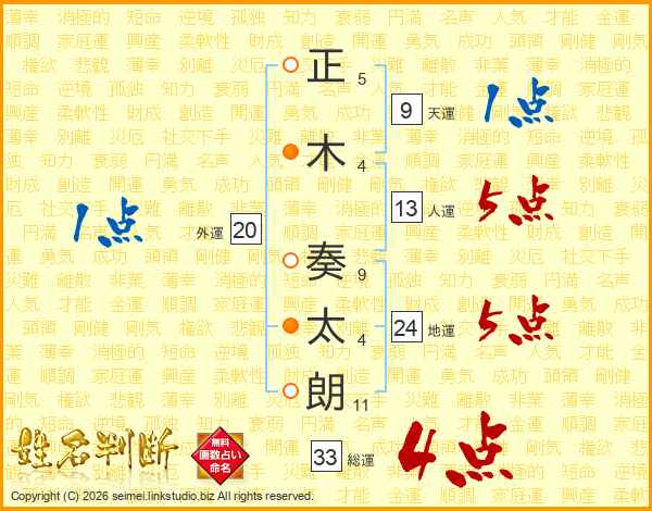正木奏太朗さんの総運は33画の4点!