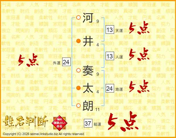 河井奏太朗さんの総運は37画の5点!