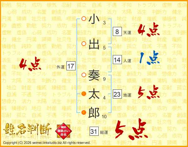 小(3画)出(5画) 奏(9画)太(4画)郎(10画)