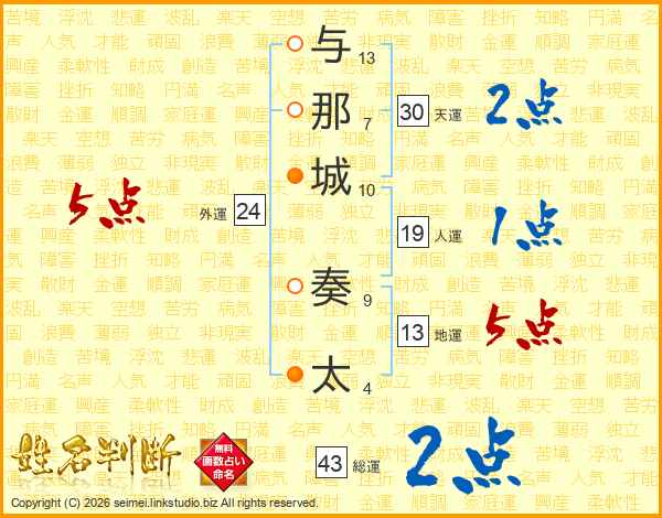 与那城奏太さんの総運は43画の2点!