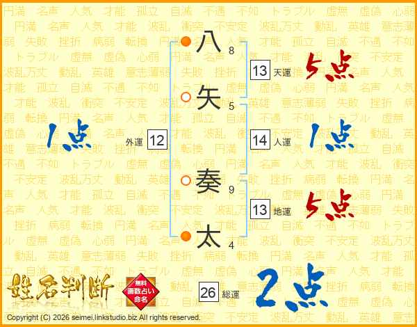 八矢奏太さんの総運は26画の2点!