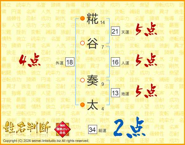 糀谷奏太さんの総運は34画の2点!