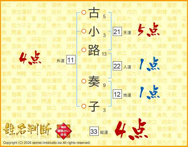 古(5画)小(3画)路(13画) 奏(9画)子(3画)