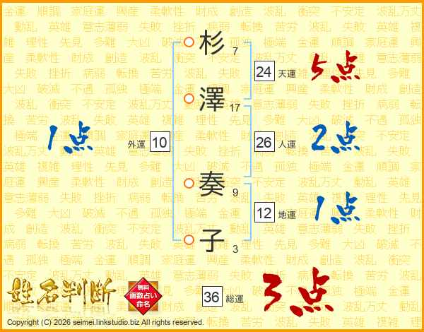 杉澤奏子さんの人運は26画の2点!