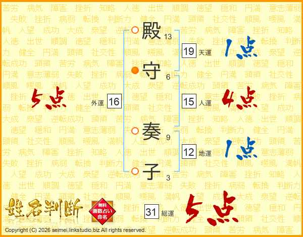 殿守奏子さんの総運は31画の5点!