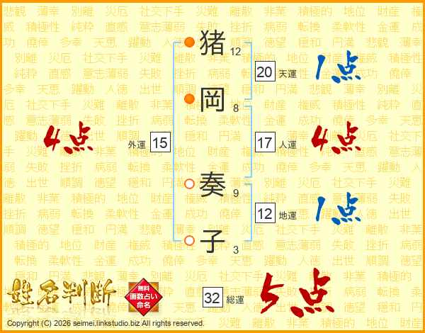 猪岡奏子さんの総運は32画の5点!