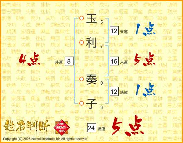 玉利奏子さんの総運は24画の5点!