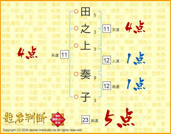 田之上奏子さんの総運は23画の5点!