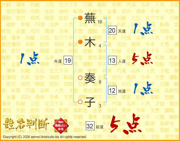 蕪木奏子さんの総運は32画の5点!