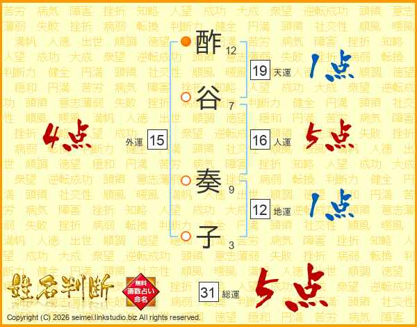 酢谷奏子さんの総運は31画の5点!