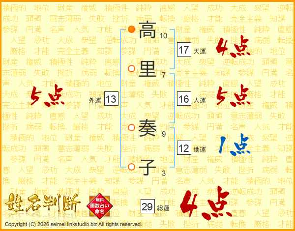 高里奏子さんの総運は29画の4点!