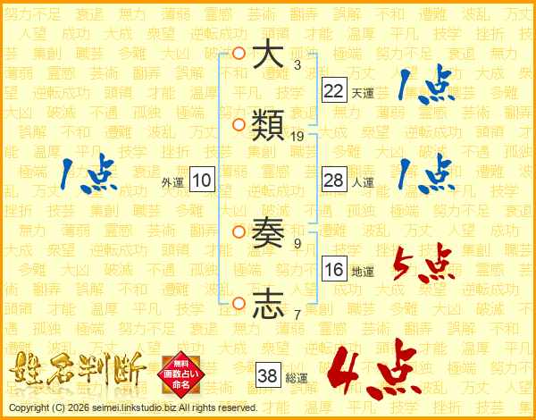 大類奏志さんの総運は38画の4点!