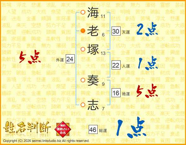 海老塚奏志さんの総運は46画の1点!