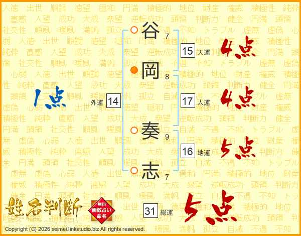 谷岡奏志さんの総運は31画の5点!