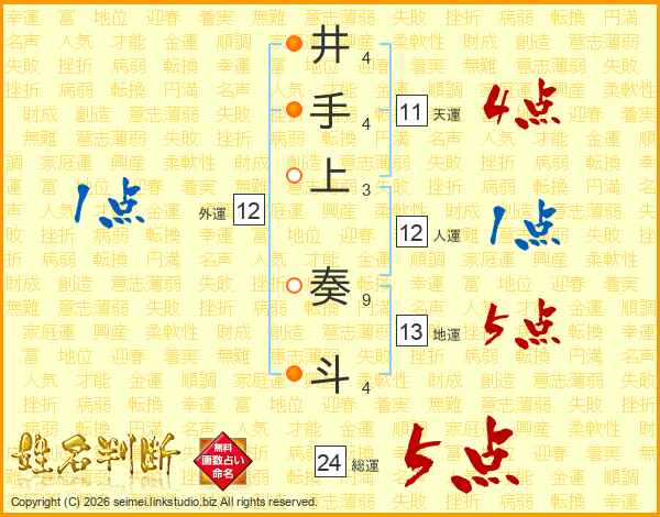 井(4画)手(4画)上(3画) 奏(9画)斗(4画)