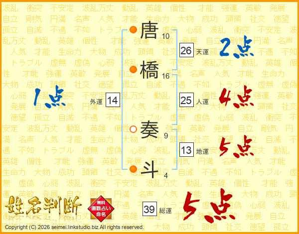 唐橋奏斗さんの総運は39画の5点!
