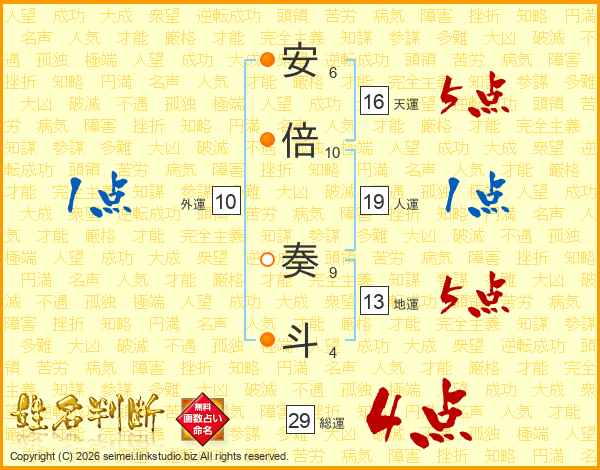 安倍奏斗さんの総運は29画の4点!