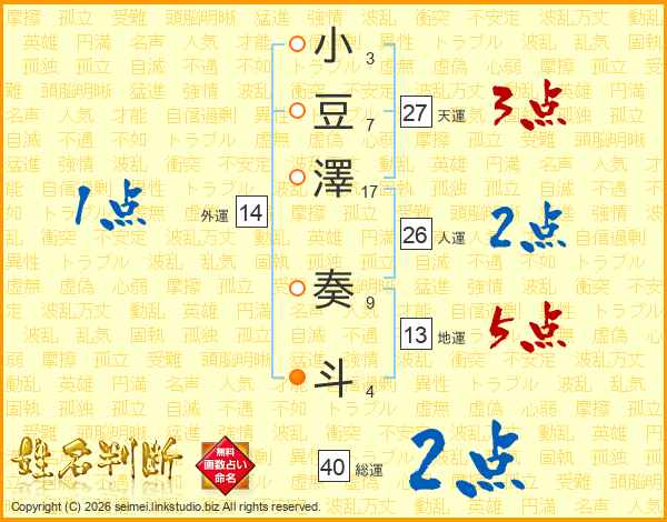 小(3画)豆(7画)澤(17画) 奏(9画)斗(4画)