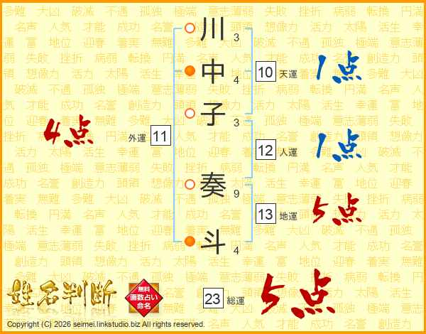 川中子奏斗さんの総運は23画の5点!