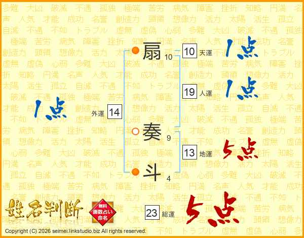 扇奏斗さんの外運は14画の1点!
