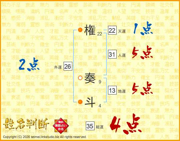 権奏斗さんの総運は35画の4点!