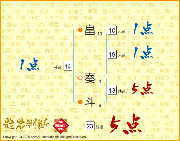 畠奏斗さんの総運は23画の5点!