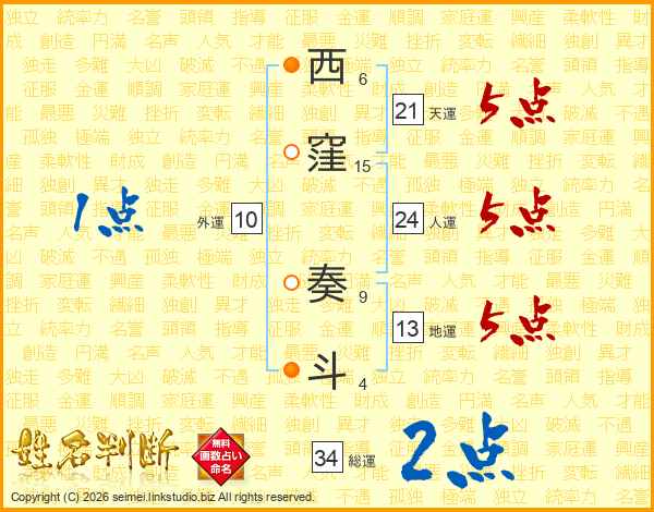 西窪奏斗さんの天運は21画の5点!