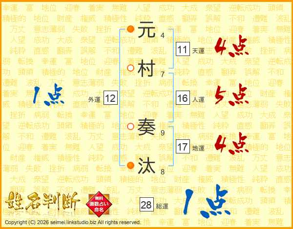 元村奏汰さんの天運は11画の4点!