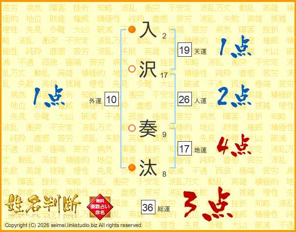 入沢奏汰さんの人運は26画の2点!