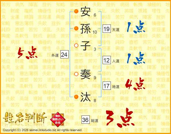 安孫子奏汰さんの総運は36画の3点!