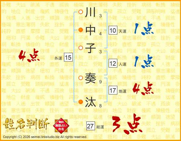 川中子奏汰さんの総運は27画の3点!