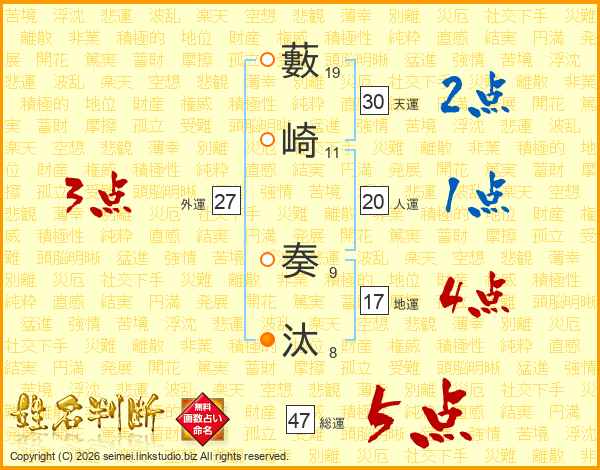 藪崎奏汰さんの総運は47画の5点!