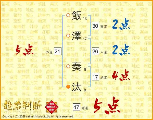 飯澤奏汰さんの総運は47画の5点!
