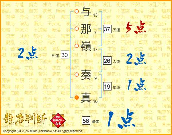 与(13画)那(7画)嶺(17画) 奏(9画)真(10画)