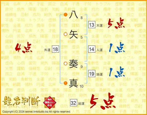 八矢奏真さんの総運は32画の5点!