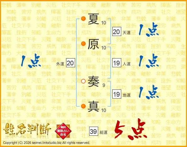 夏原奏真さんの総運は39画の5点!