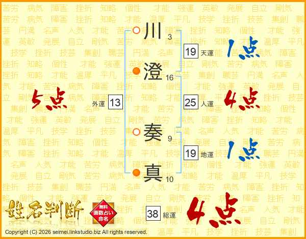 川澄奏真さんの総運は38画の4点!