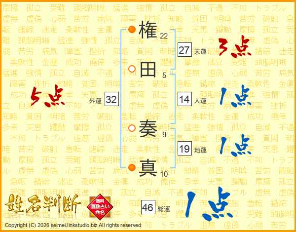 権田奏真さんの総運は46画の1点!