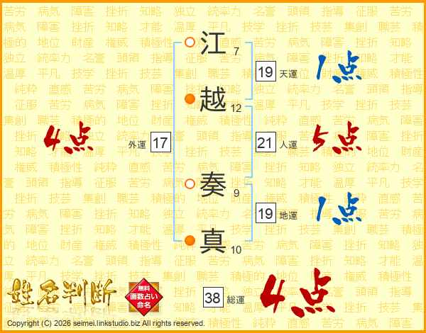 江越奏真さんの総運は38画の4点!
