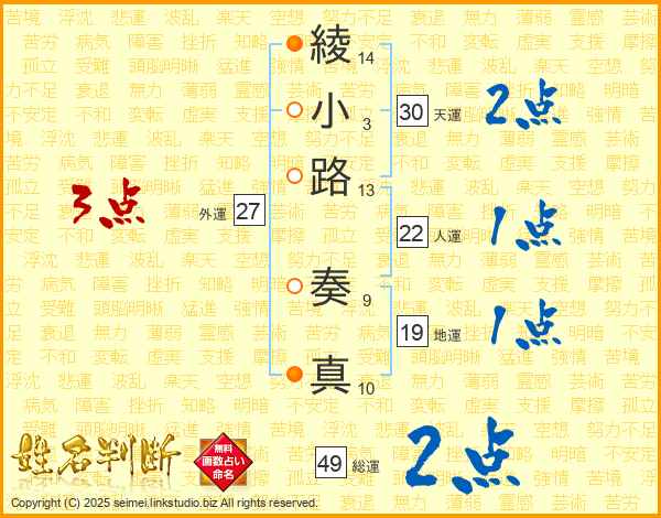 綾小路奏真さんの総運は49画の2点!