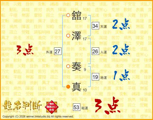 舘澤奏真さんの総運は53画の3点!