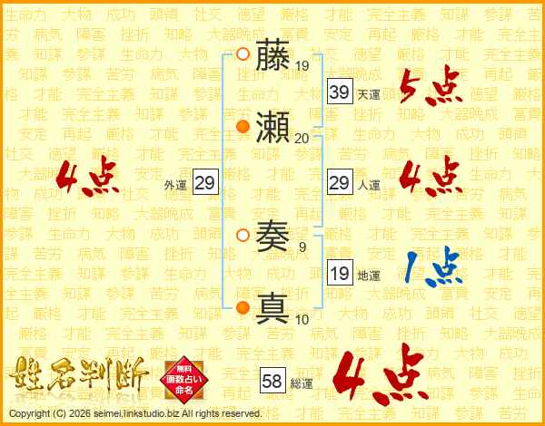 藤(19画)瀬(20画) 奏(9画)真(10画)