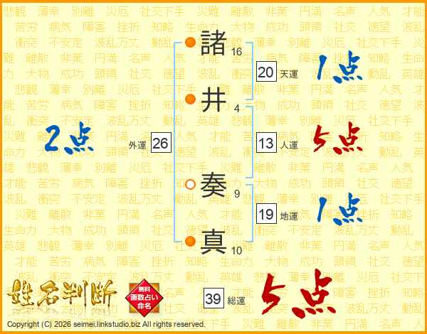 諸井奏真さんの総運は39画の5点!