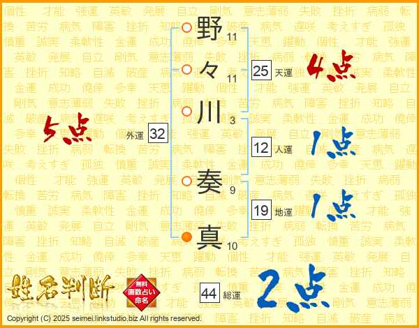 野々川奏真さんの天運は25画の4点!