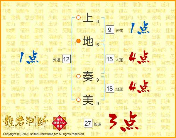上地奏美さんの総運は27画の3点!