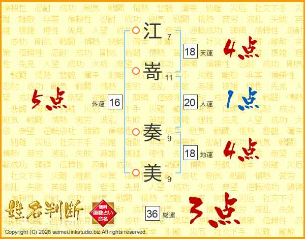 江嵜奏美さんの総運は36画の3点!